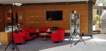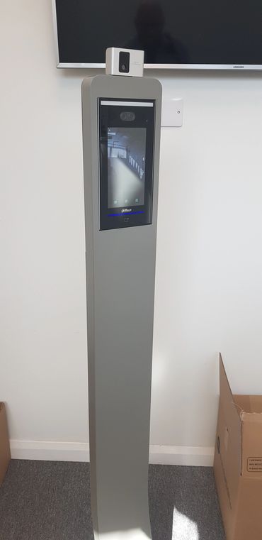 The access panel operates much closer than a thermal camera and can achieve the same 0.3 degree accuracy without the need for a black-body. It can be mounted on a freestanding kiosk, desk or wall, ideal for receptions and low traffic areas requiring screening. The unit can also detect if masks are being used and report if necessary.